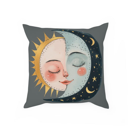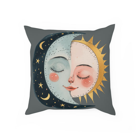 Graues Deko Sofakissen "Sonne und Mond" rechts