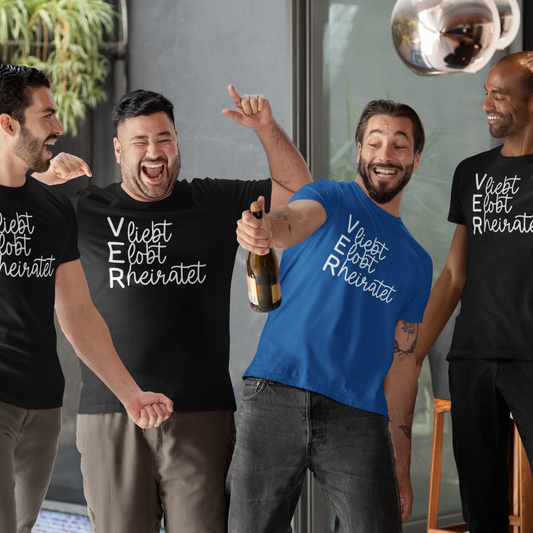 JGA/ Hochzeit T-Shirt "Verliebt, verlobt, verheiratet" S-5XL