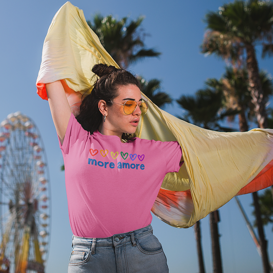 "more amore" T-Shirt – LGBTQIA+ Pride mit Regenbogen-Herzen S–5XL