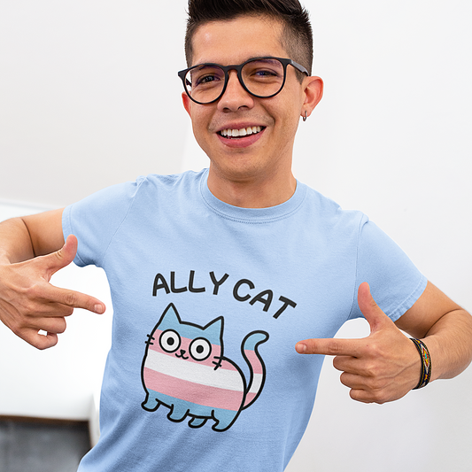 Ally Cat T-Shirt – LGBTQIA+ Pride Design mit Progress- oder Trans Flagge S-5XL